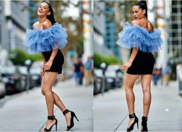 Cause a commotion in our ruffled mini dress. This dress is partially and features a flouncy, frill hem and a gorgeous off-shoulder design trimmed with a tiered double ruffle along the bust and shoulder straps. Perfect for a night on the town!